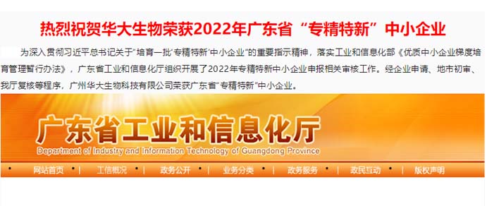 喜報丨祝賀華大生物榮獲廣東省“專精特新”中小企業(yè)和廣州市“專精特新”扶優(yōu)計劃培育企業(yè)